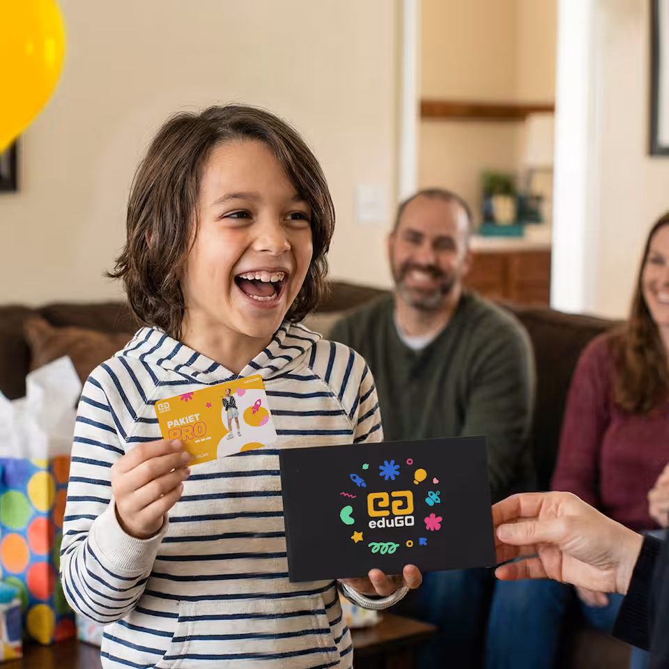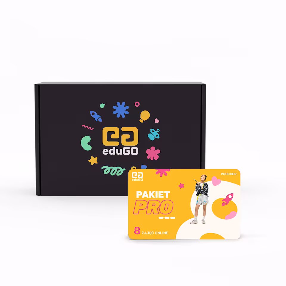 Jeśli szukasz prezentu dla dziecka, który mówi: "Wierzę w Ciebie i Twój talent", Voucher EduGO w Pakiecie Pro jest najlepszym wyborem. To najbardziej rozbudowana propozycja, obejmująca 8 super edukacyjnych spotkań online. Gwarantująca solidną dawkę wiedzy i zabawy, która pozwala dziecku poczuć się pewnie w nowej pasji.